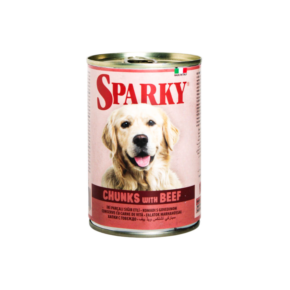 طعام الكلاب البالغة "سباركي" بقطع اللحم البقري هو وجبة متكاملة ومتوازنة مصممة خصيصًا للكلاب البالغة. يحتوي على 5% من اللحم البقري، بالإضافة إلى مشتقات اللحوم الأخرى، الحبوب، البيض، المعادن، والفيتامينات الأساسية لدعم صحة الكلب ونشاطه.