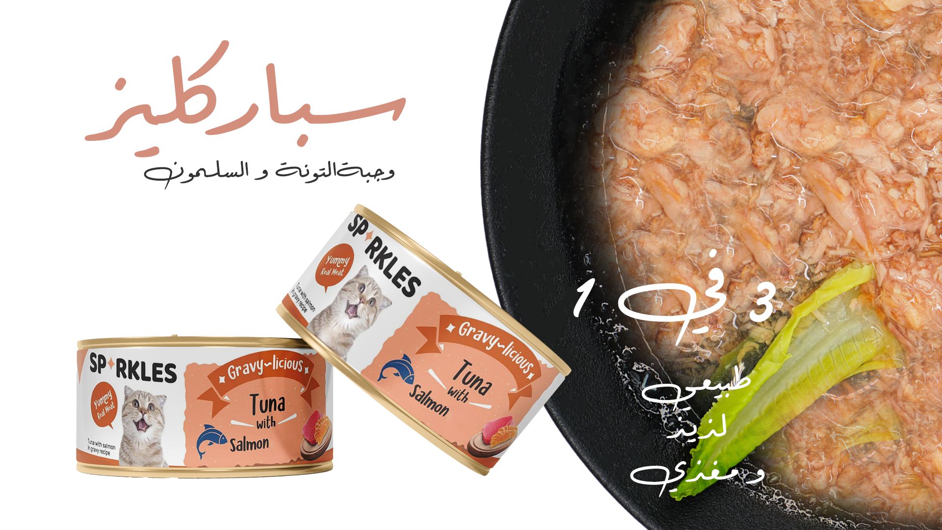- مصنوع من لحم التونة الحقيقي بنسبة 100% وسمك السلمون الطازج.