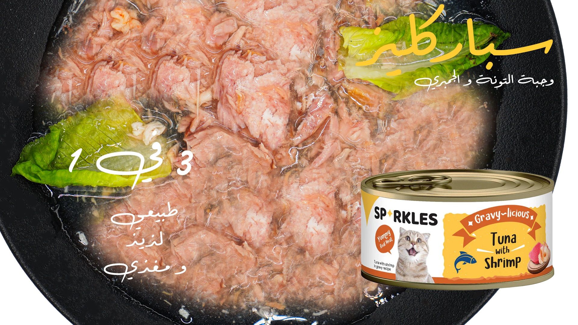 - مصنوع من لحم التونة الحقيقي بنسبة 100% والجمبري الطازج.